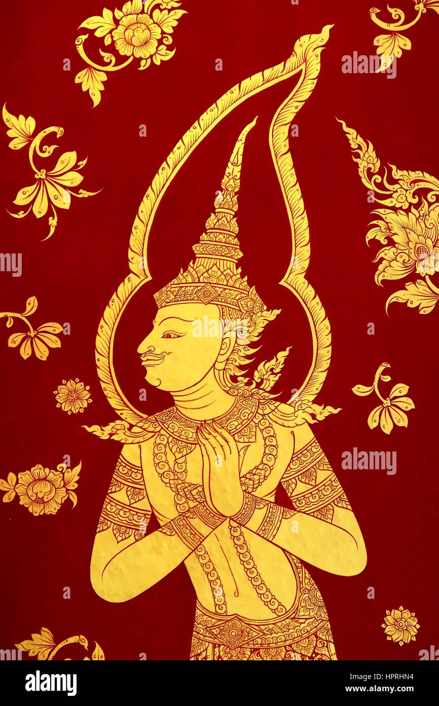 Thai Wall Art Painting Angel In The Temple Thailand Stock
